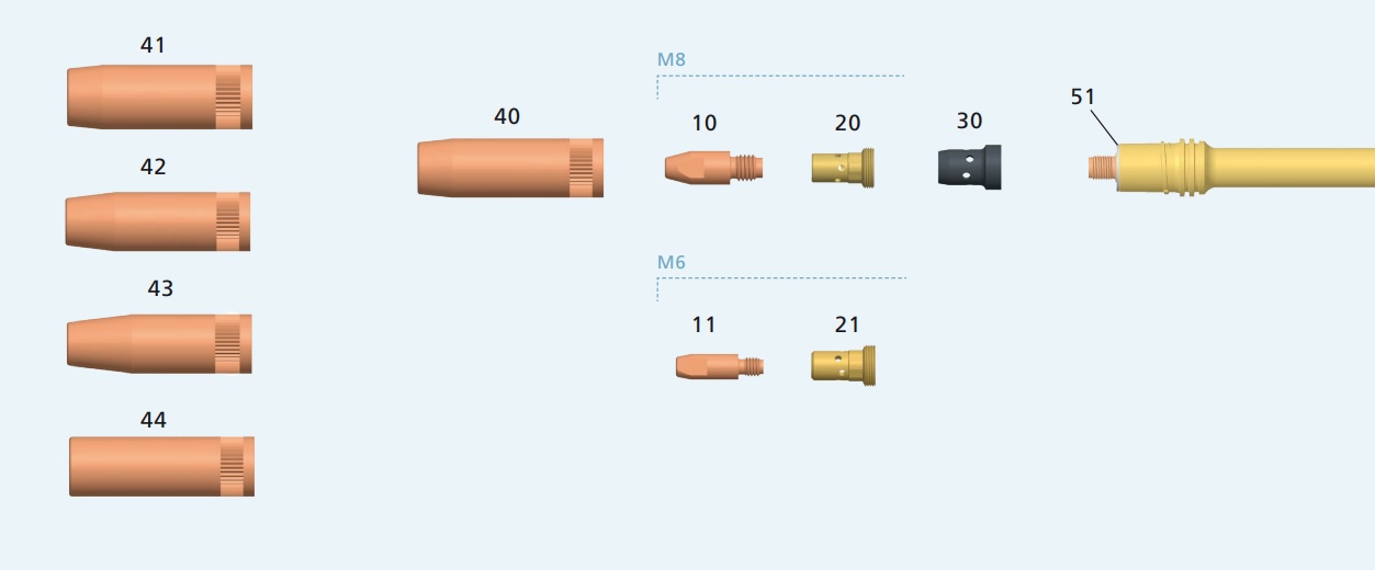 | 20 | Za kontaktnu sapnicu M8, 4mm duža verzija | 342P008133 | |