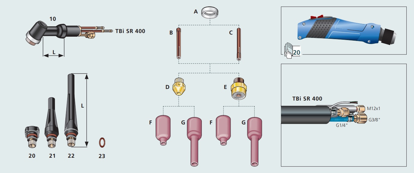 Gorionik za TIG zavarivanje SR 400 TSB 35/50 (Ø 13 mm)
