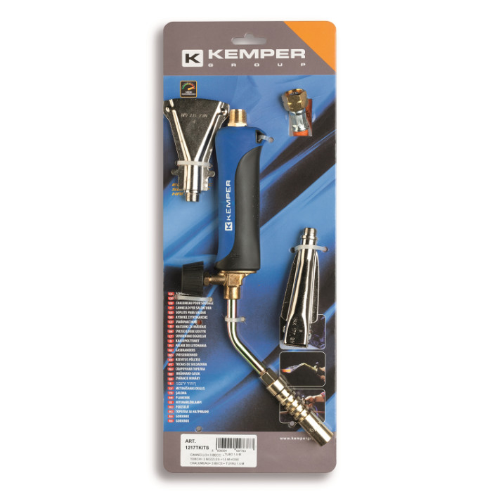 Set za lemljenje sastoji se od rukohvata sa zakrivljenom cijevi duljine 8 cm, plamenika Ø 20 mm, ukupne duljine 35 cm i 2 mlaznice: ravne i viljuškaste. Plamenik postiže temperaturu 1900 °C dok se objekt zagrijavanja može zagrijati do 850 °C. Crijevo duljine 1.5m je uključeno u set.