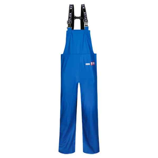 Vatrootporne kišne hlače s naramenicama FR-LR46 napravljene od iznimno kvalitetne sintetičke kože, sa svojstvima vodootpornosti i otpornosti na vjetar savršene za svakodnevne radne aktivnosti na kiši.