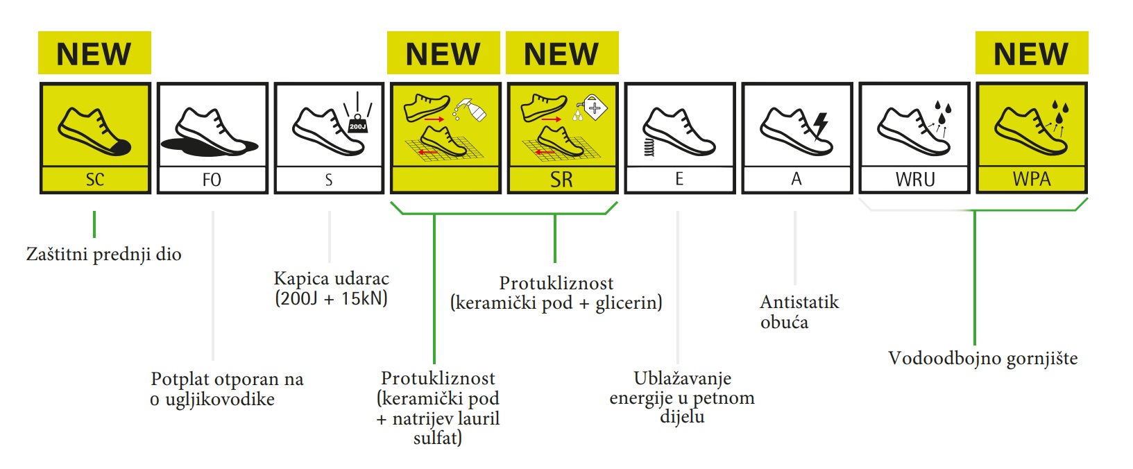 Obuća, certificirana u skladu s normom UNI EN ISO 20345:2012, može se stavljati na tržište i nakon uvođenja nove norme, sve dok njihov certifikat ne istekne. Dakle, određeno vrijeme će na tržištu biti dostupna obuća prema obje norme.
